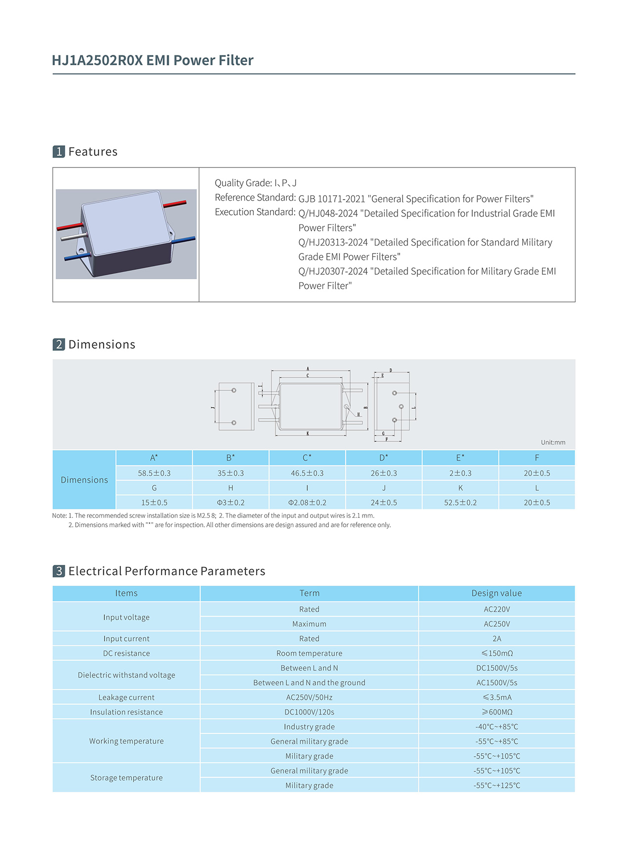Torch EMI Power Filters HJ1A2502R0X
